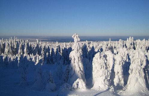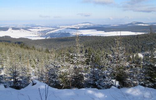 In 1000 m Höhe durch das verschneite Erzgebirge mit schöner Aussicht in Richtung Annaberg